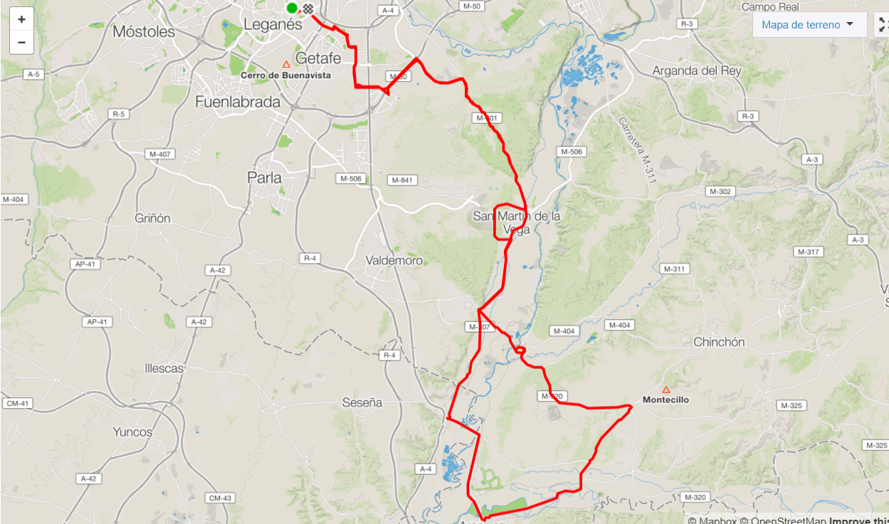 La ruta es hacia Aranjuez (Madrid) tiene las siguientes características: