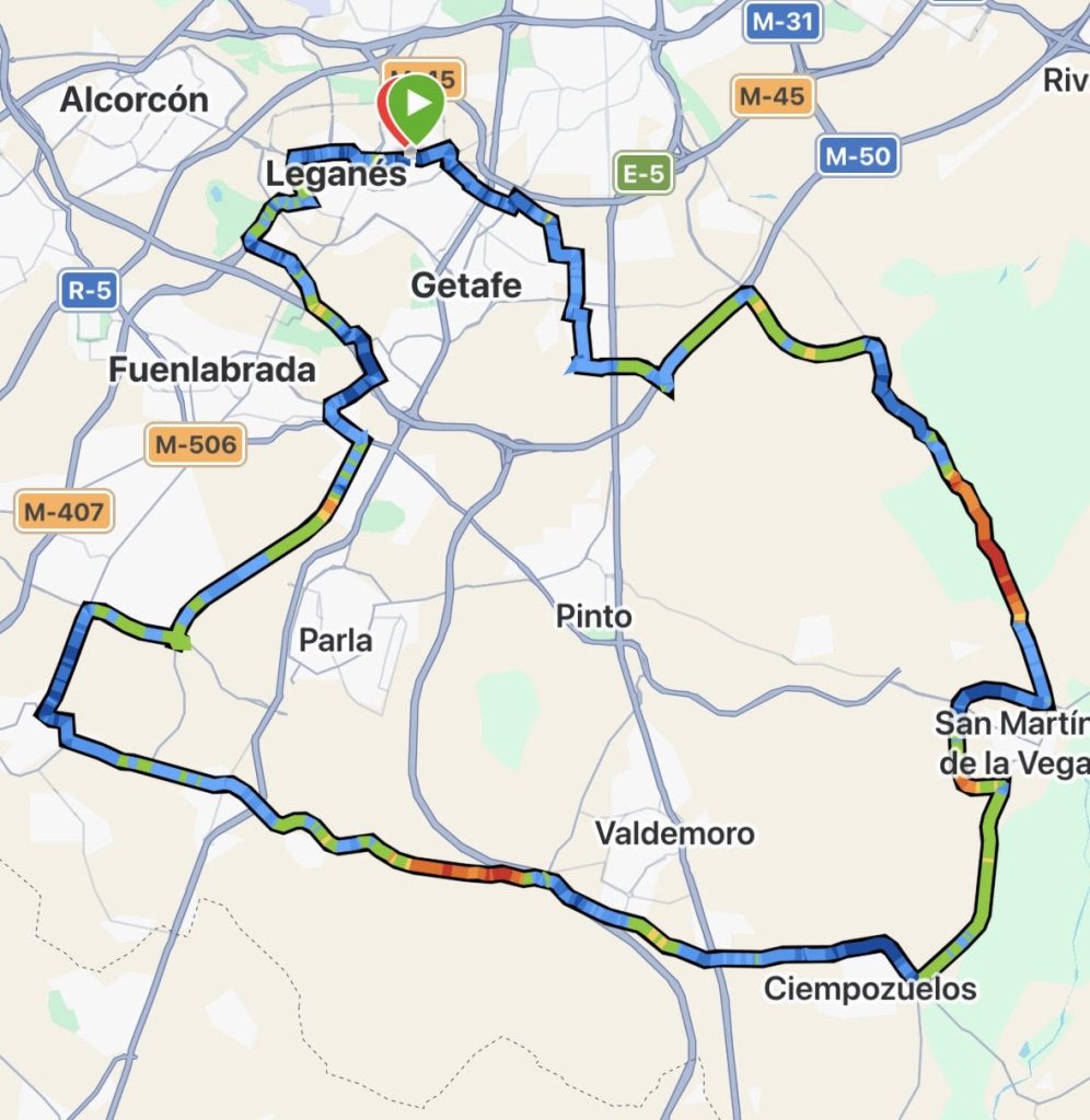 RUTA: LEGANÉS-GETAFE-SAN MARTIN-CIEMPOZUELO-TORREJON DE LA CALZADA-GRIÑON-FUENLABRADA-LEGANES